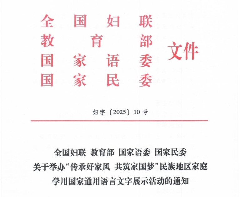 2025年8月5日晚,由全国妇联、教育部、国家语委、国家民委联合主办的“传承好家风 共筑家国梦”民族地区家庭学用国家通用语言文字展示活动在新疆喀什隆重举行。来自全国17个民族的普通家庭依次登台,通过丰富多彩的形式集中展示民族地区家庭学用国通语的丰硕成果,精彩呈现各族群众同语同心、携手奋进的动人场景。