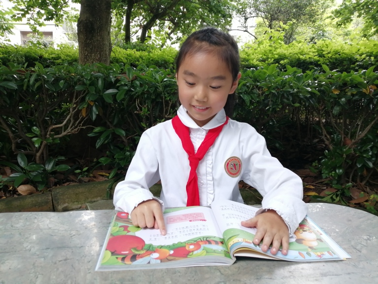 我爱阅读,翻开书本就能遇有趣的人和事,快乐藏在故事里,“我阅读,我快乐!”