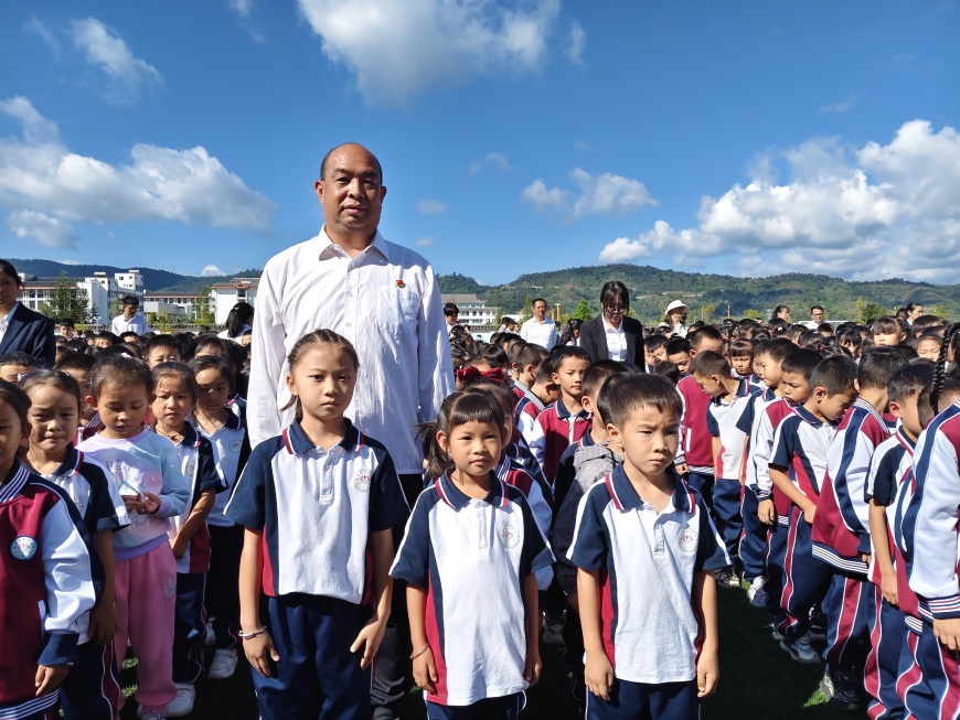 2025年8月28日,周自文、陈仕良两位老师前往姚安县栋川小学报到,正式开启为期一年的支教生活。新学期伊始,周自文老师承担的教学任务是一(4)班、三(5)至三(8)班体育与健康教学和一(4)班配班老师的工作。同时,协助栋川小学总务处开展后勤管理工作。为了让一年级学生尽快适应新环境,每天7:00到校,迎接学生入校,每天为学生打早点、打午餐、打扫就餐区域卫生,组织学生积极参加升旗仪式、消防应急疏散演练。