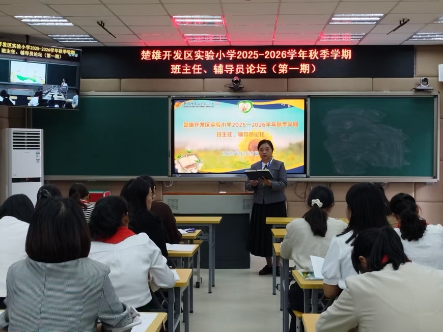 班主任是班级成长 “引路人”,少先队辅导员是少年儿童思想启蒙 “筑梦人”。作为学校教育管理核心力量,二者肩负塑品格、护成长的使命。为激活育人活力、搭建经验共享平台,将班级管理好方法转化为成长新动能,提升教育工作者专业素养与管理水平,楚雄开发区实验小学 2025-2026 学年秋季学期班主任、辅导员论坛如期启幕。