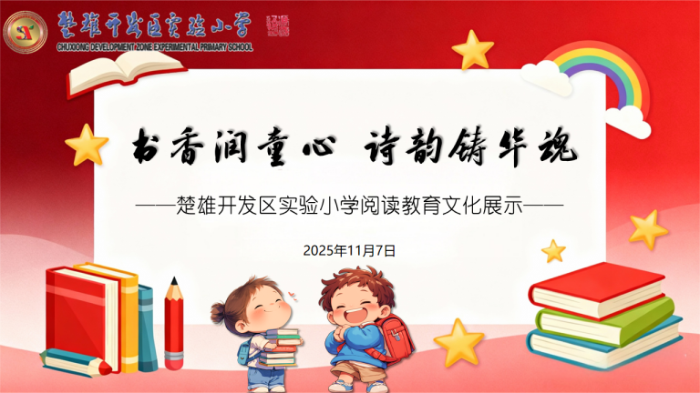 2025年11月7日下午,楚雄开发区实验小学首届阅读教育文化展演与民族地区小学铸牢中华民族共同体意识教育实践成果展示在校本部、古镇校区、嘉禾小学三大会场联动启幕。书香漫卷,童声飞扬,为初冬的校园注入了温暖而厚重的文化力量。