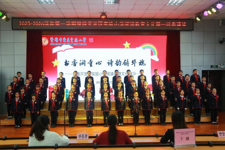 本次活动的主题是“书香润童心 诗韵铸华魂”。紧扣学段特点,让不同年级孩子与经典对话。一、二年级从“新课程”系列用书自主选材,或诵课文片段、或讲经典故事,稚嫩声音满是对文字的热爱;高年级围绕“中华魂”主题,以“弘扬长征精神、赓续红色血脉”为核心诵读,一字一句重现长征信念,让红色基因在书声中传承。