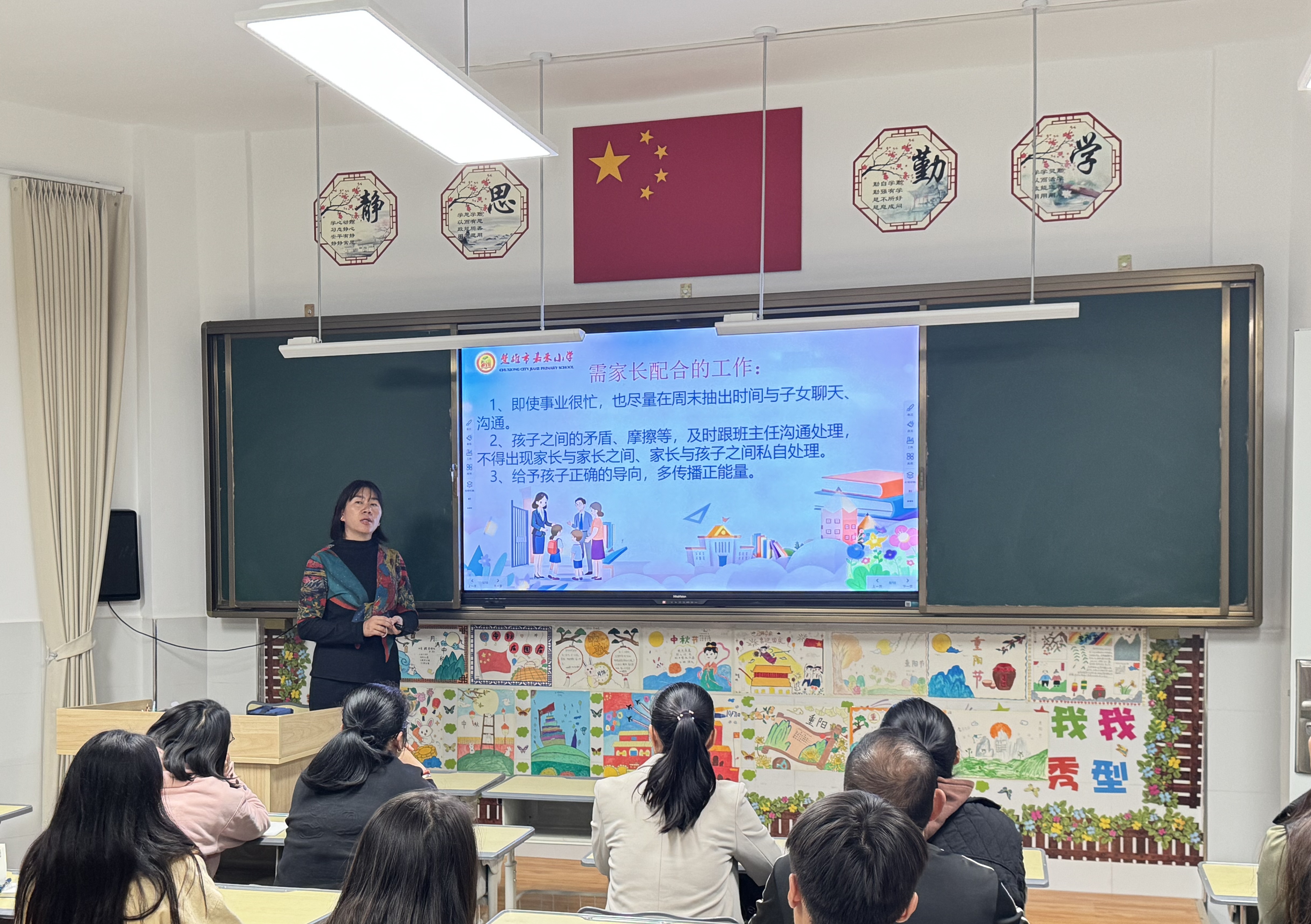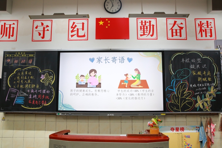为了迎接家长们的到来,老师们精心布置了教室,黑板上绘制了欢迎的板报,课桌上整齐地摆放着学生的作业、试卷和成长记录册。每一处细节,都凝聚着学校对此次家校会面的高度重视与诚挚心意。