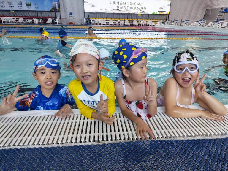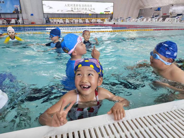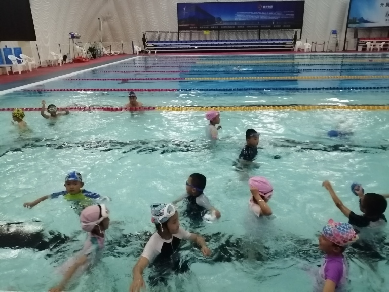 热身运动后,孩子们在教练的指引下来到池边。随着一阵清脆的入水声,泳池里顿时热闹起来。小家伙们认真地实践着刚学的要领:鼓起腮帮潜入水中练习憋气,像一只只小海豚;放开浮板,小心翼翼地尝试漂浮。一时间,泳池里水花轻漾,尽是孩子们努力而欢快的小身影。