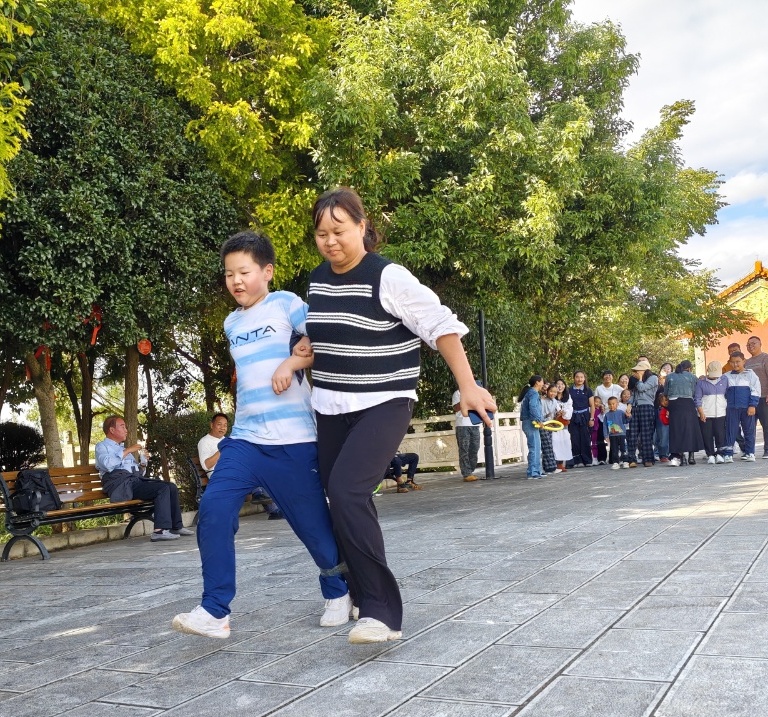 本次团建最温馨的风景线,莫过于萌娃们的加入!古镇二年级和嘉禾校区一年级组的活动中,大朋友和小朋友一起上阵。“盲人击鼓”“两人三足”游戏笑料百出,孩子们的笑声成了最动听的乐章。工作与生活在此刻完美融合,团队情谊在家庭的温馨中悄然升温。