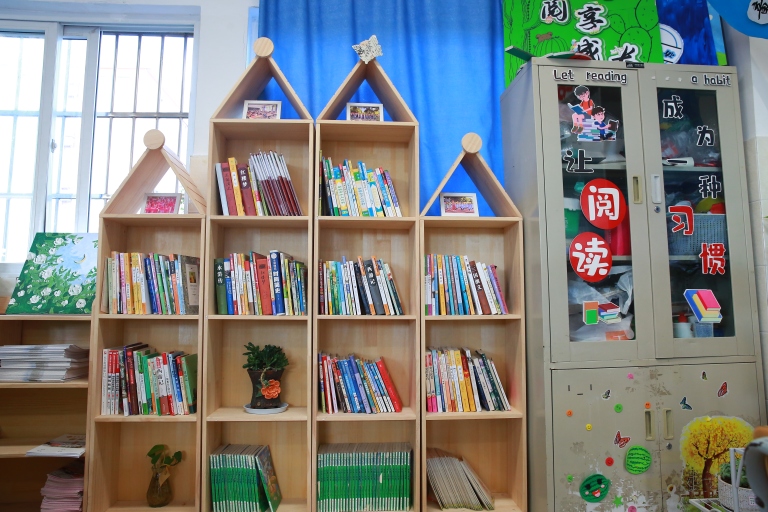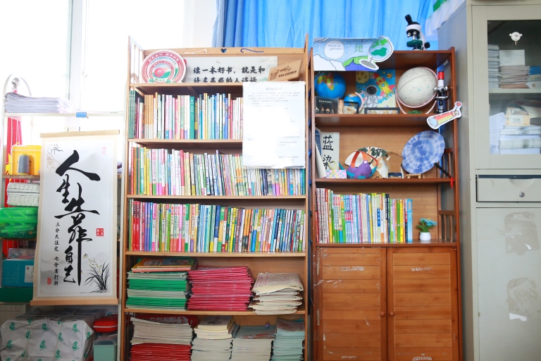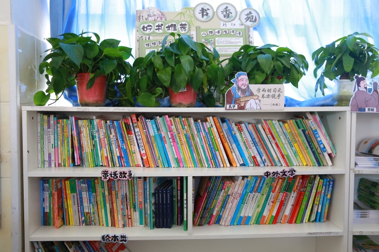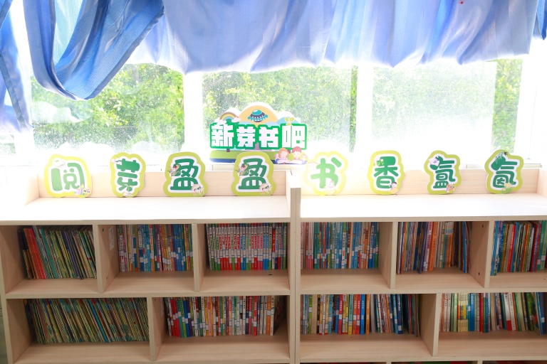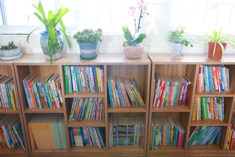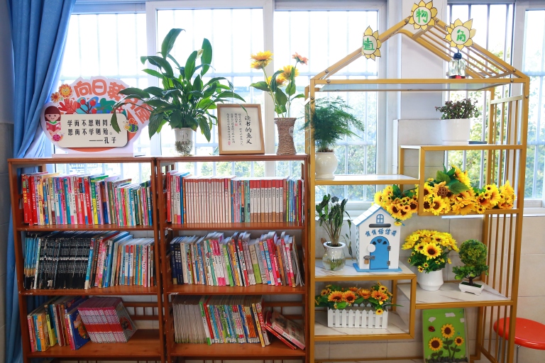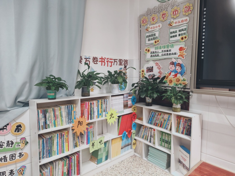 书架里满是裹着鲜活色彩的书籍,而桌角木牌上 “书山有路勤为径” 的句子,正和绿植的生机一起,轻轻裹住这间小书屋的暖意。