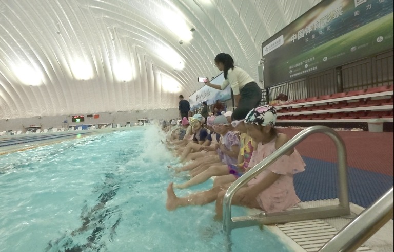 进入试水阶段,教练耐心指导学生感知水温、适应水环境,重点示范落水后如何保持冷静;下水后,同学们在教练的指导下学习漂浮、踩水等基础自救技能。大家专注聆听、积极实践,在亲身体验中快速掌握了实用的水中安全技能。