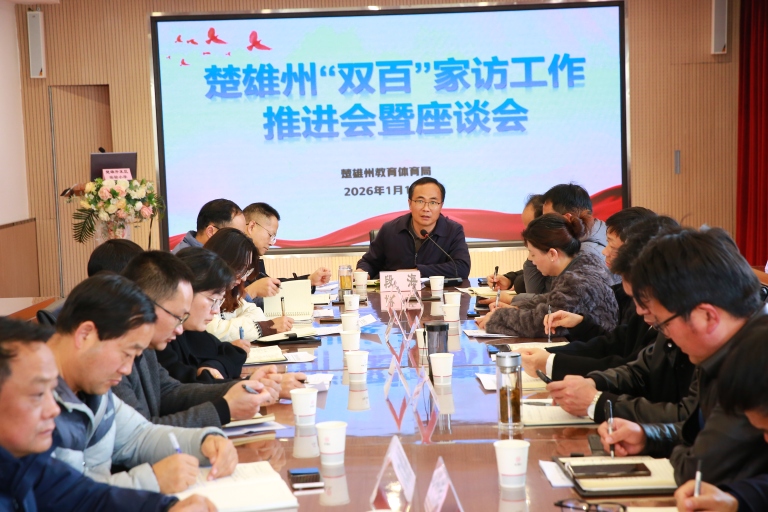 为深入推进全州“双百”家访工作走深走实,搭建家校社协同育人坚实桥梁。2026年1月13日,楚雄州“双百”家访工作推进会暨座谈会在楚雄开发区实验小学隆重召开,州教育体育局段海副局长、全州十个县市分管“双百”家访工作的副局长、科长及相关学校代表齐聚楚雄开发区实验小学,共话家访工作成效,共谋育人高质量发展路径。