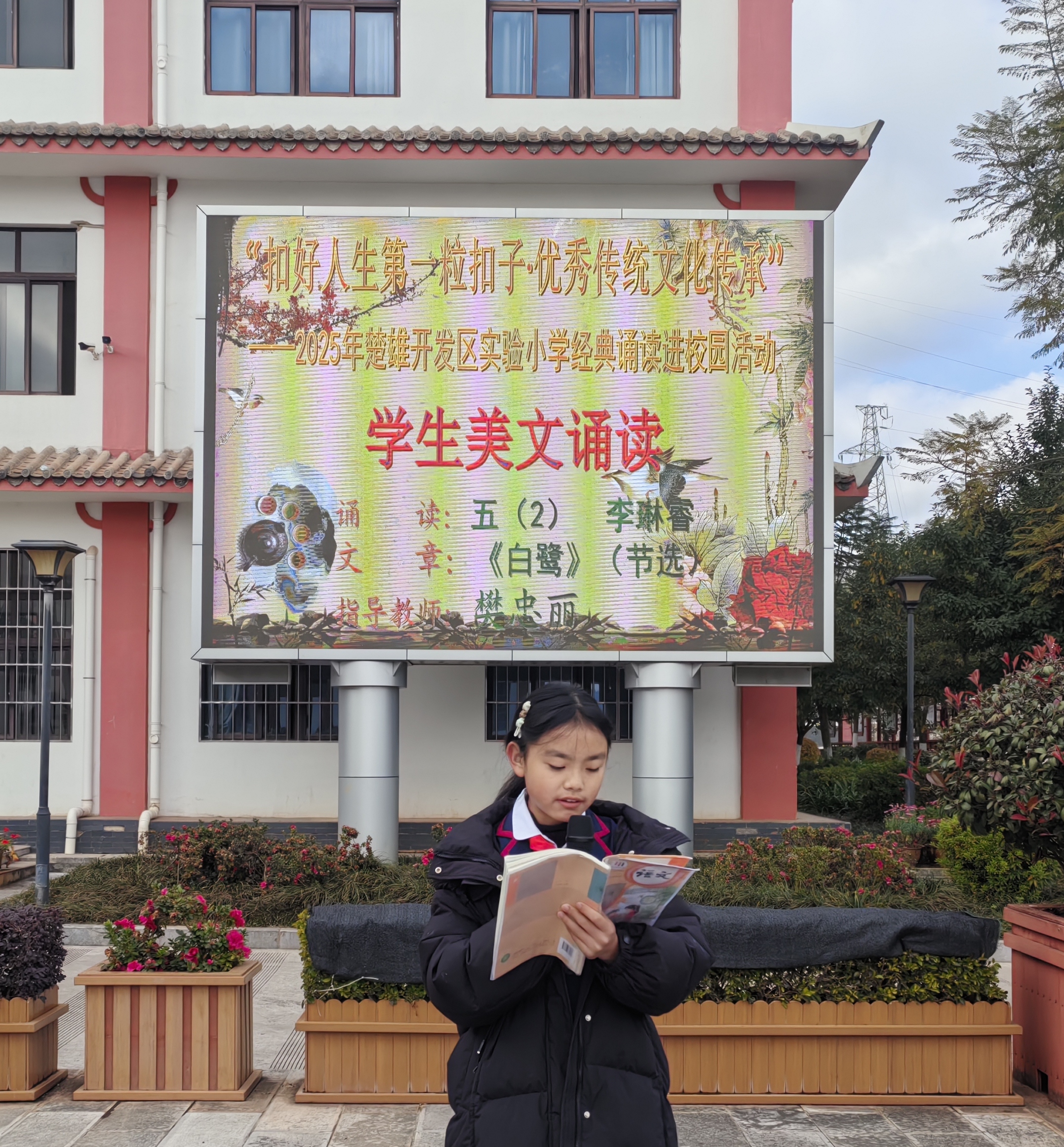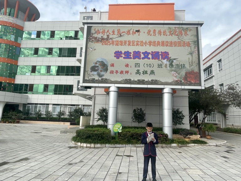 为丰富校园文化生活,让学生在经典美文中浸润心灵、涵养气质,本学期,楚雄开发区实验小学校本部、古镇校区、嘉禾校区持续开展每周美文诵读活动。经过长期的积累与沉淀,同学们在诵读中与文字对话,与美好相逢,为校园增添了浓浓的书香气息。
