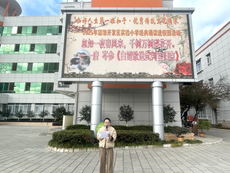 晨读启智,声韵流转。每周一的校园,总有琅琅书声穿越晨光,浸润人心。楚雄开发区实验小学坚持开展的“教师经典诵读”活动,已在岁月沉淀中走过166期征程,本学期13场诵读盛宴如期而至、圆满落幕。教师们以声为媒,领诵秋雪主题经典诗篇,让中华文脉在抑扬顿挫间浸润校园,彰显我校以阅读育人的初心与坚守。