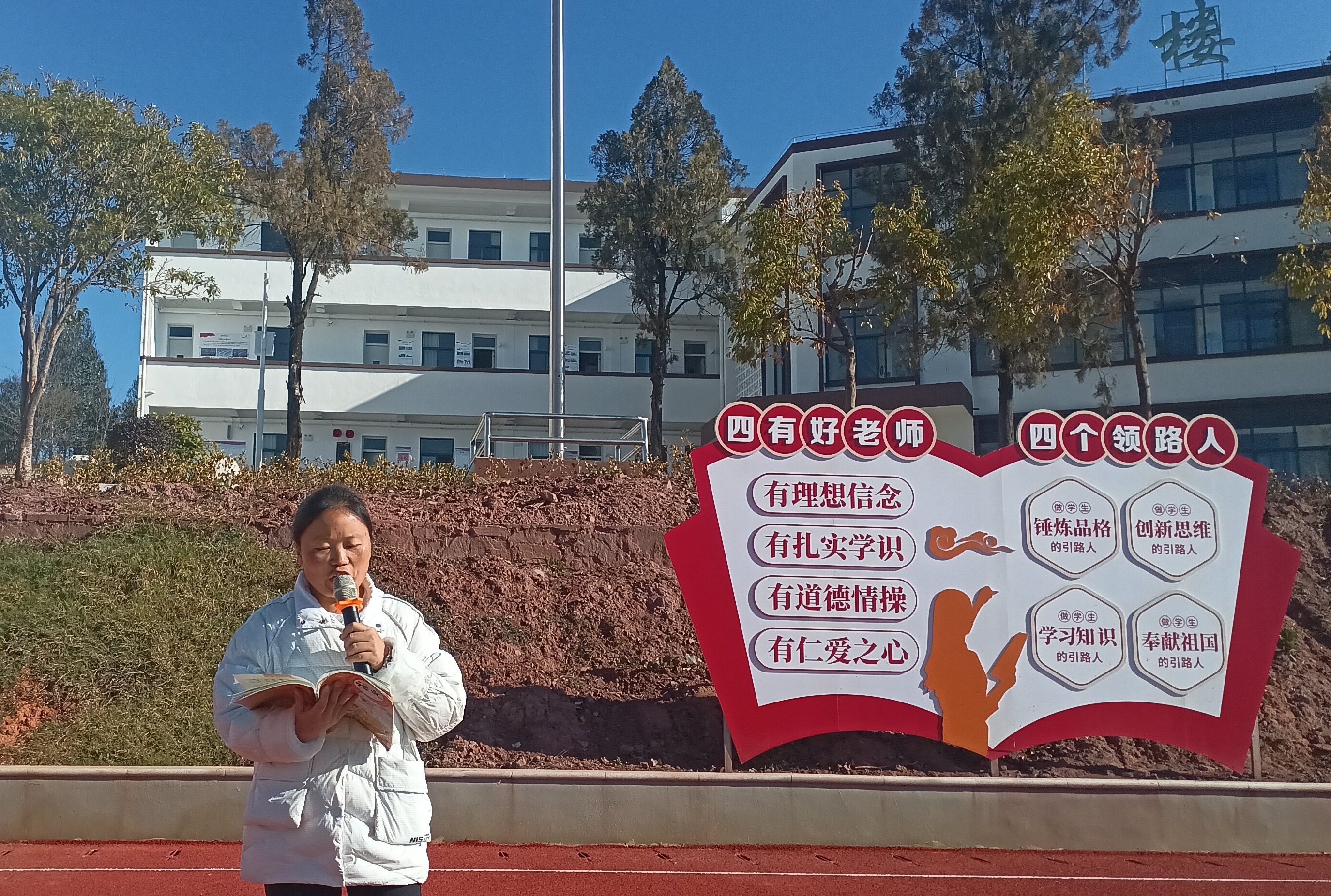 本学期的诵读活动紧扣时序之美,以“秋韵”、“雪意”为脉络精心铺展,各位领诵教师逐一登台,为师生呈现了一场场浸润心灵的文化盛宴。