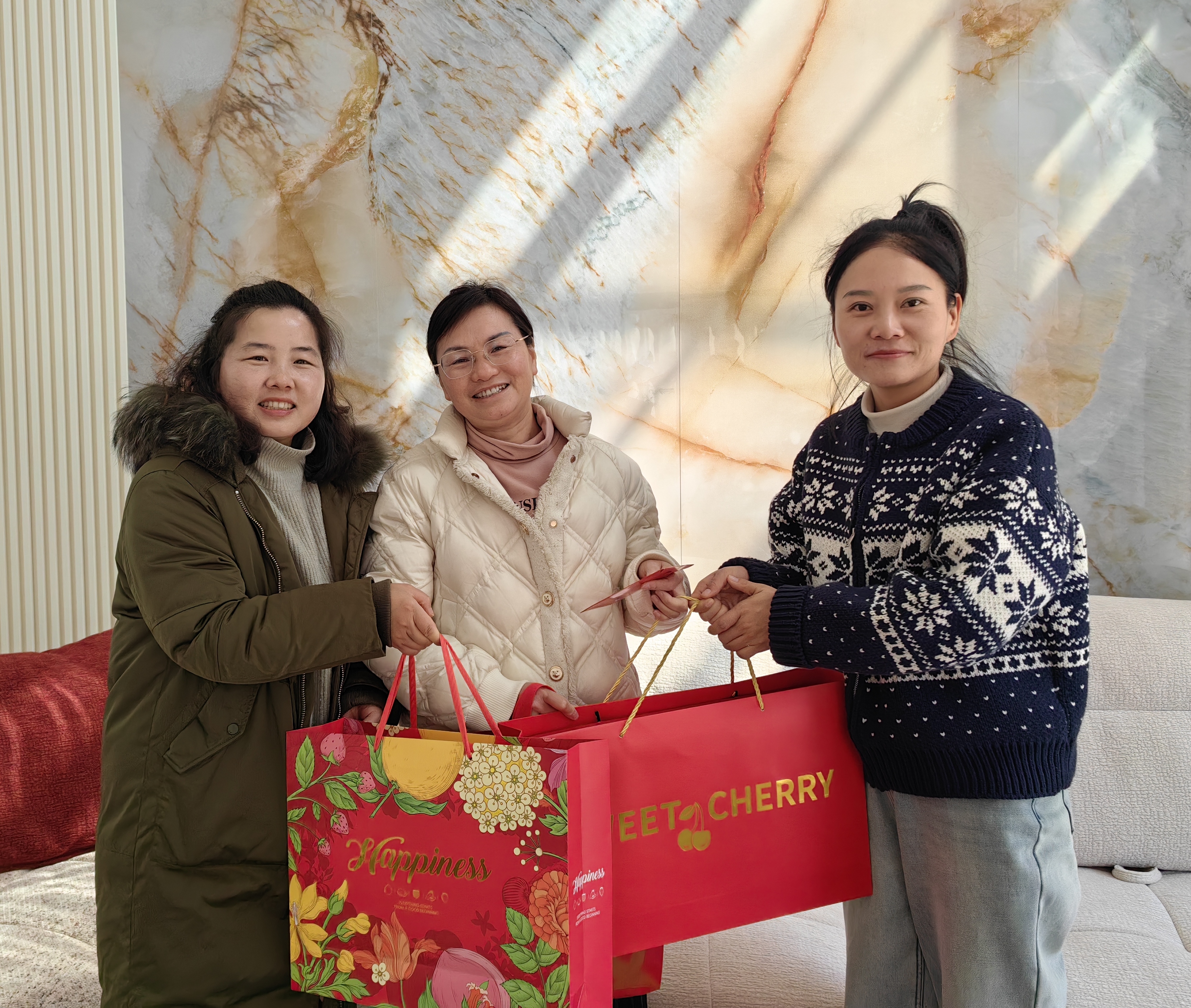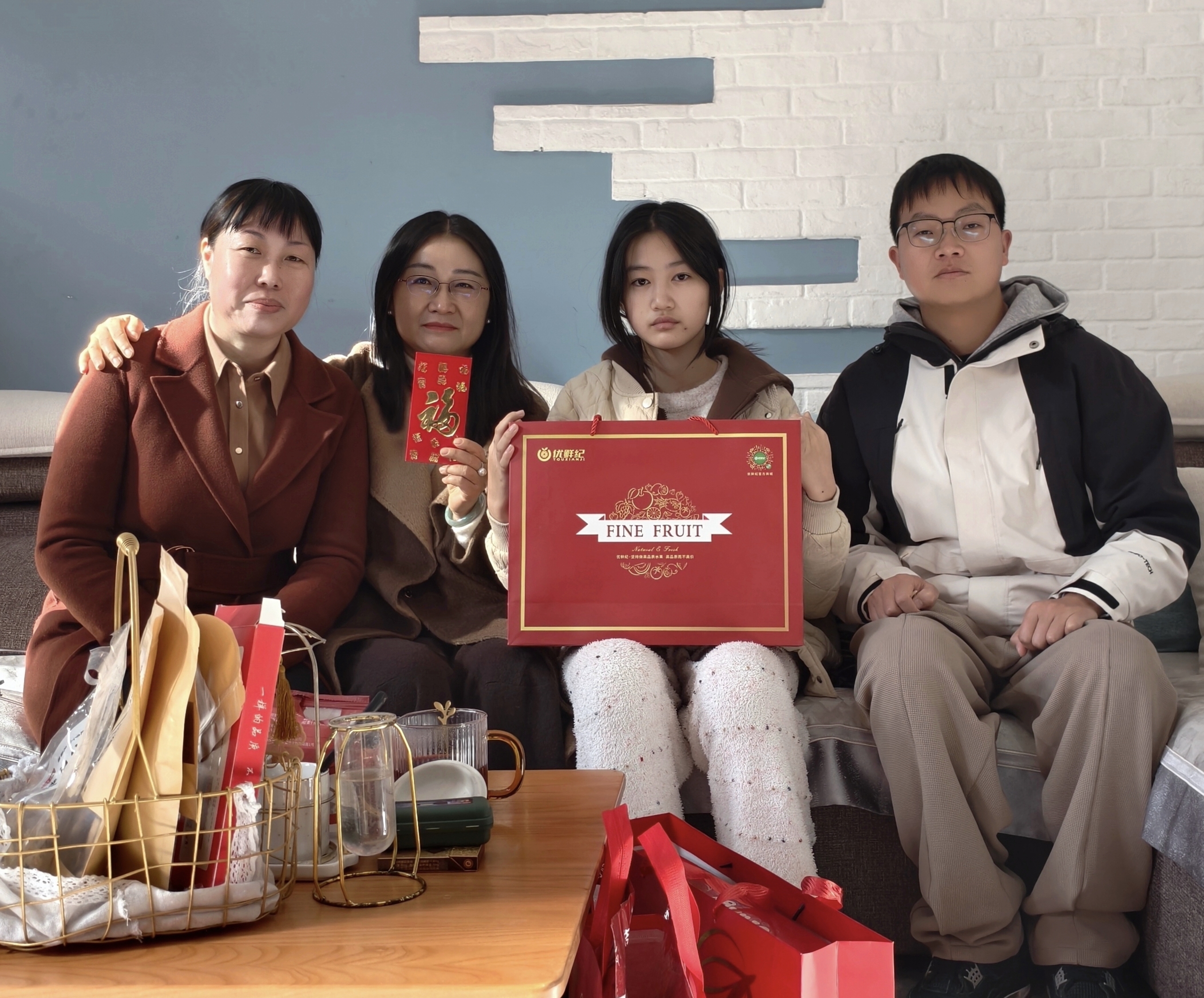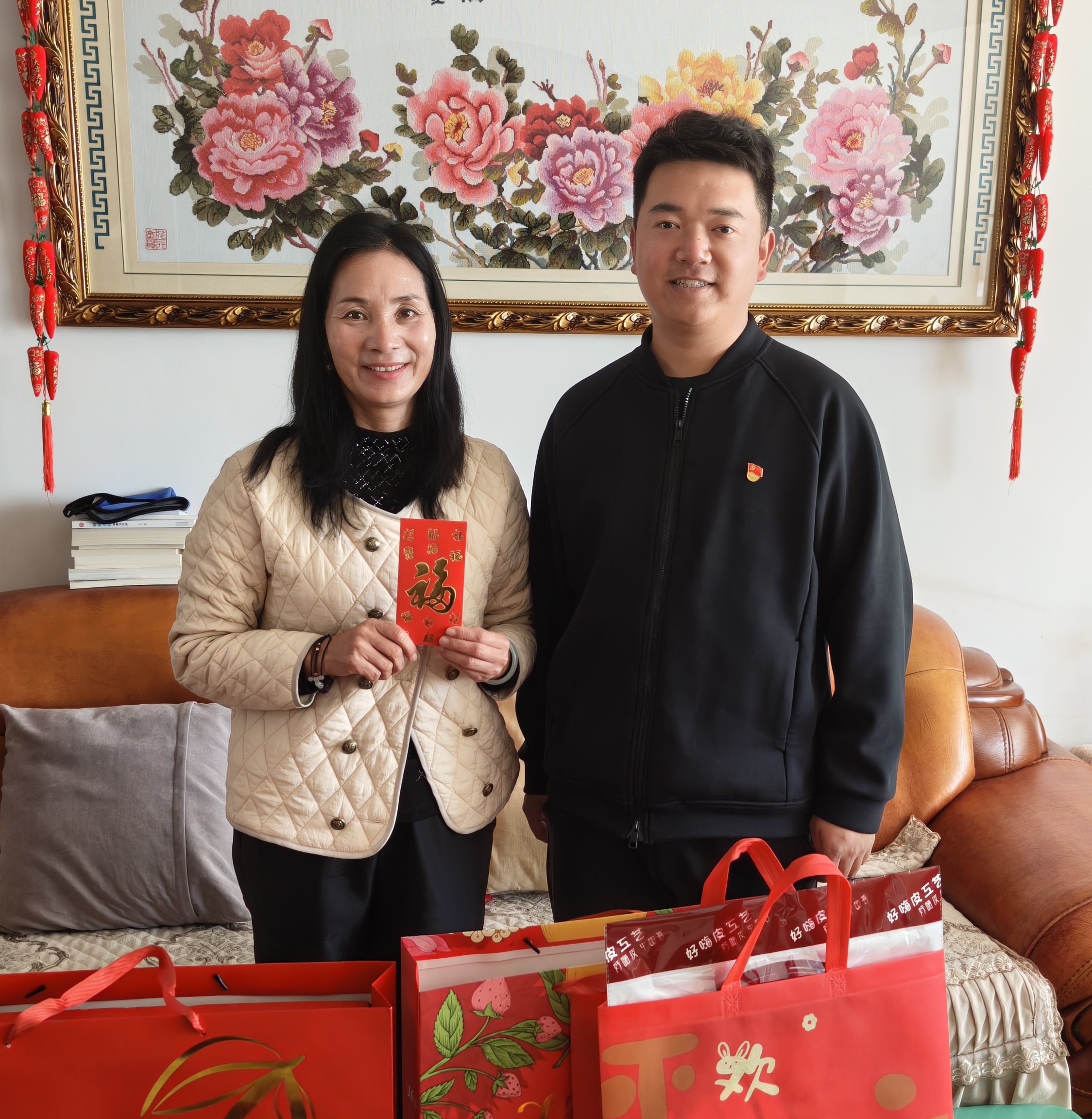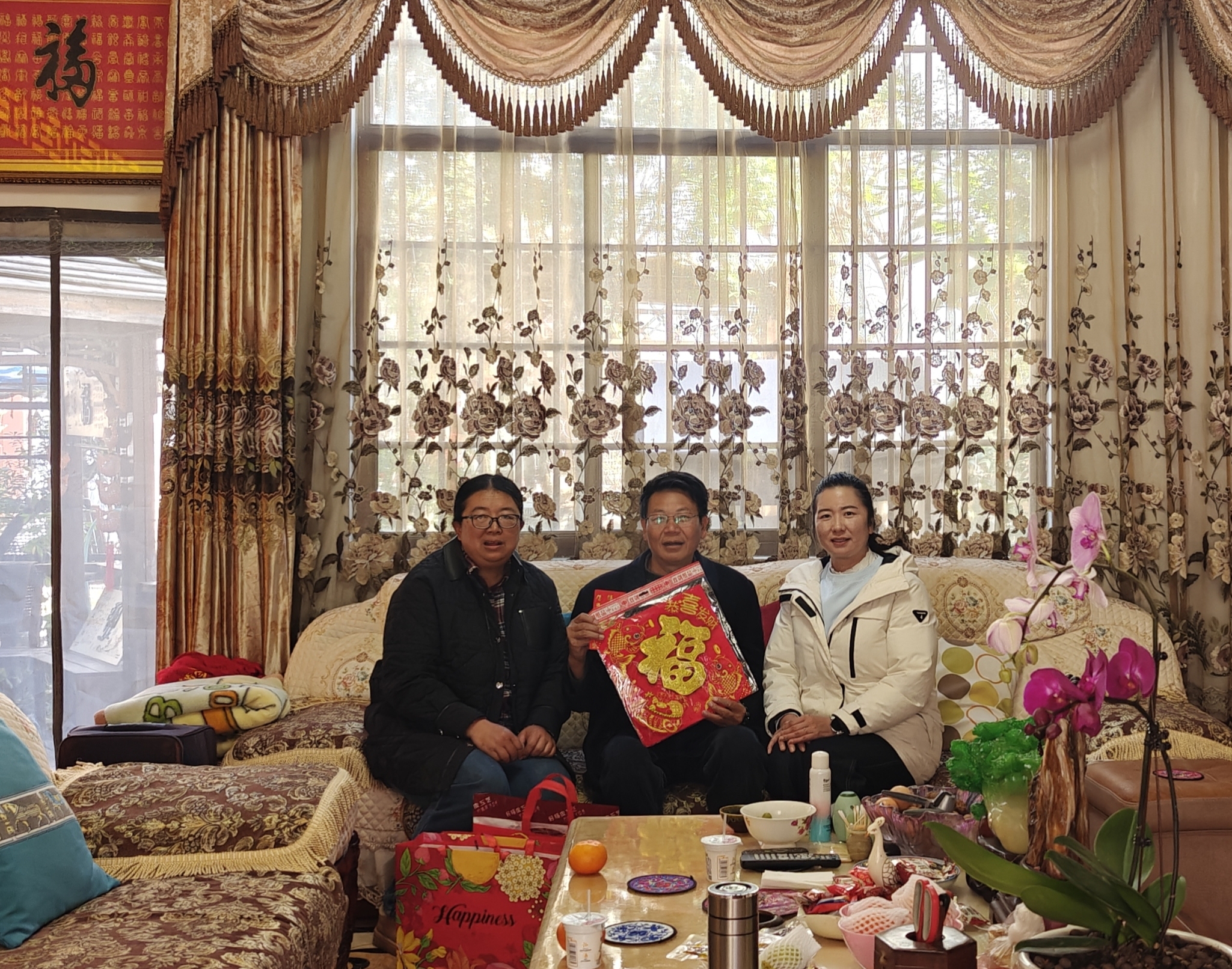 慰问小组为退休教师们送上了精心筹备的节日慰问品:苹果寓意“平安喜乐、福寿康宁”;橙子象征“诸事顺遂、如意吉祥”;福字门贴承载“福满家门、喜事临门”的美好期许;福字中国结缠绕着“团圆美满、吉庆绵长”的新春祝福。这份沉甸甸的心意,既有清甜果香的暖意,又有红韵福泽的喜气,将学校对退休教师的敬重与牵挂,化作看得见、摸得着的温暖,让寒冬里的家充满浓浓的年味儿与温情。