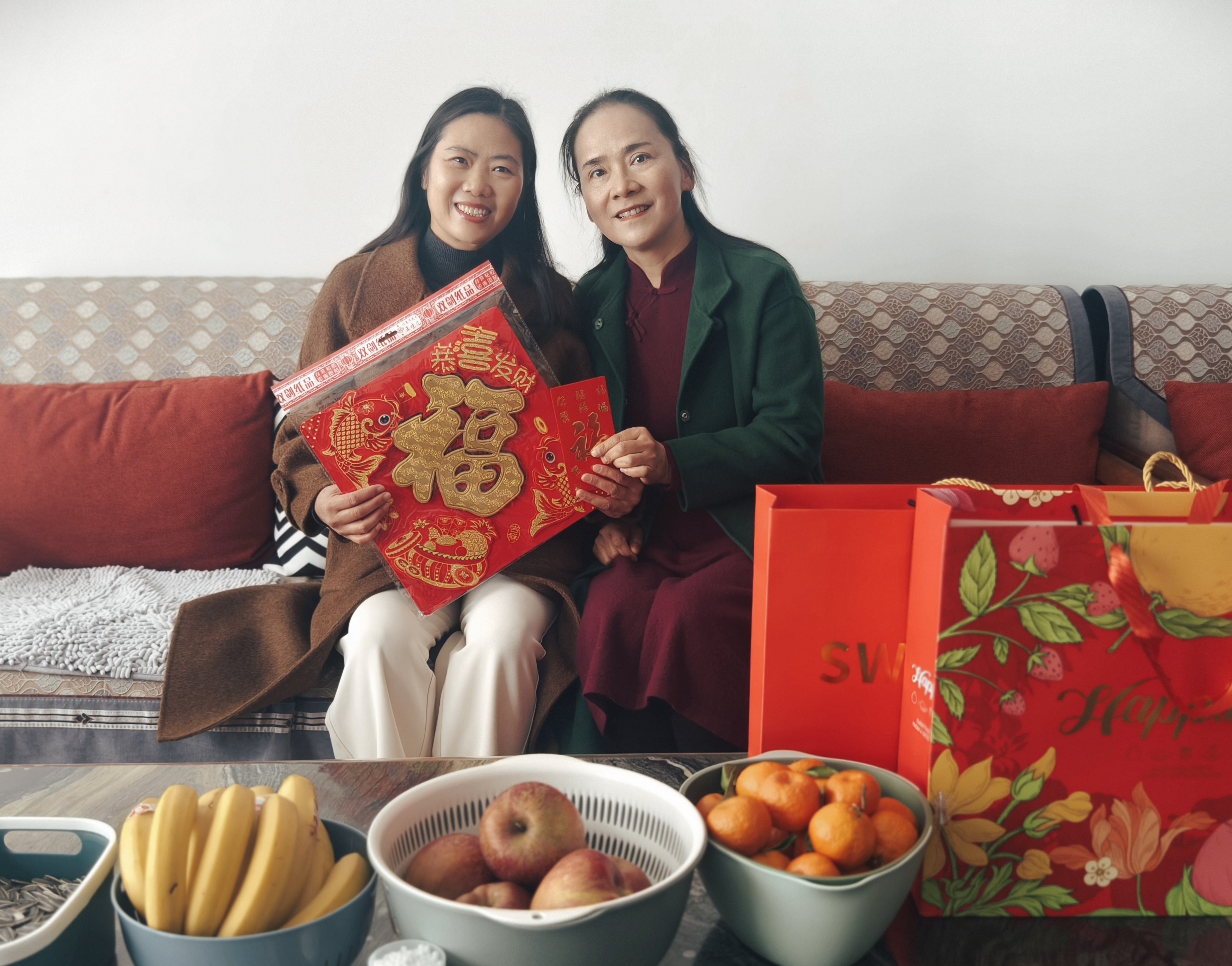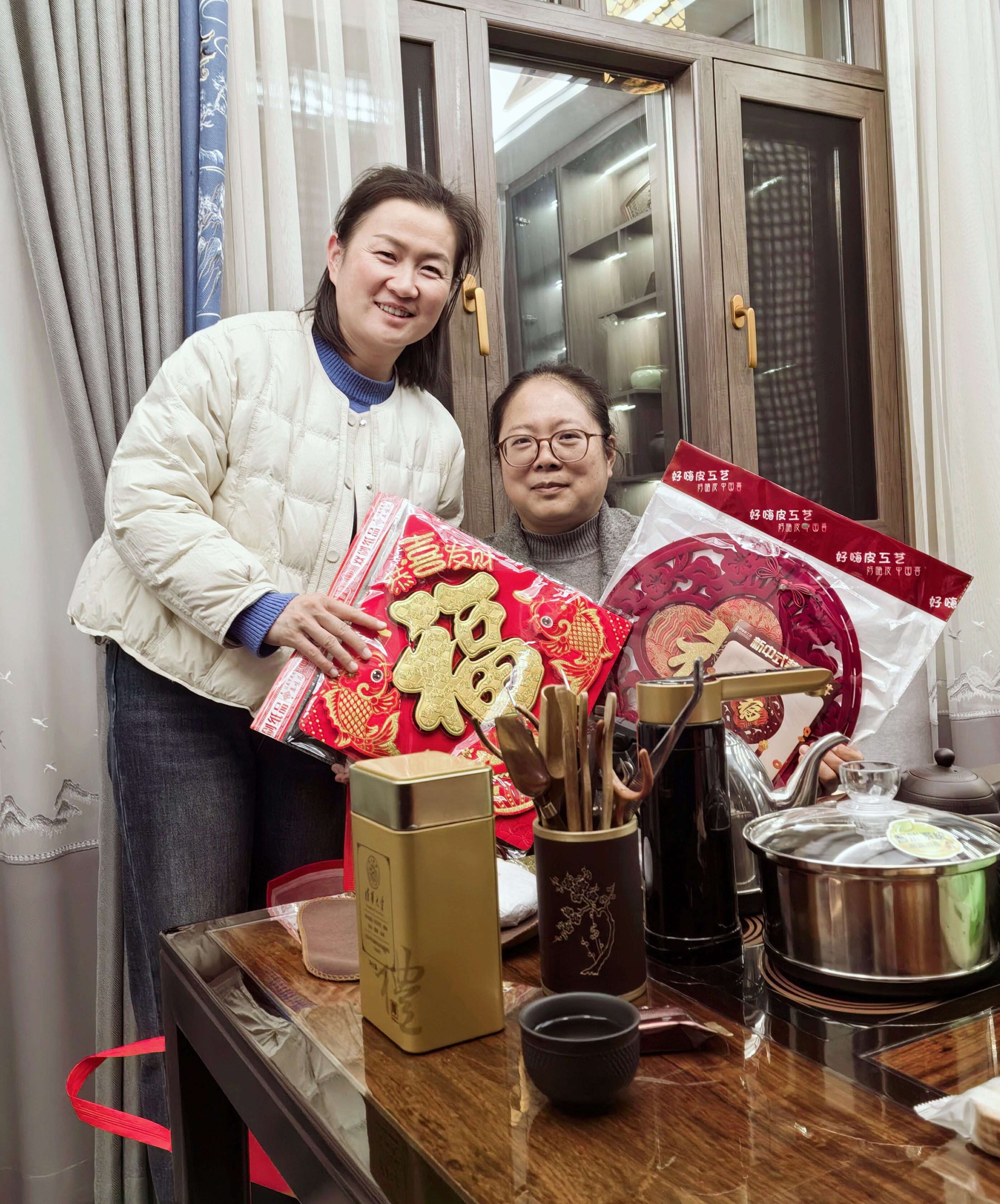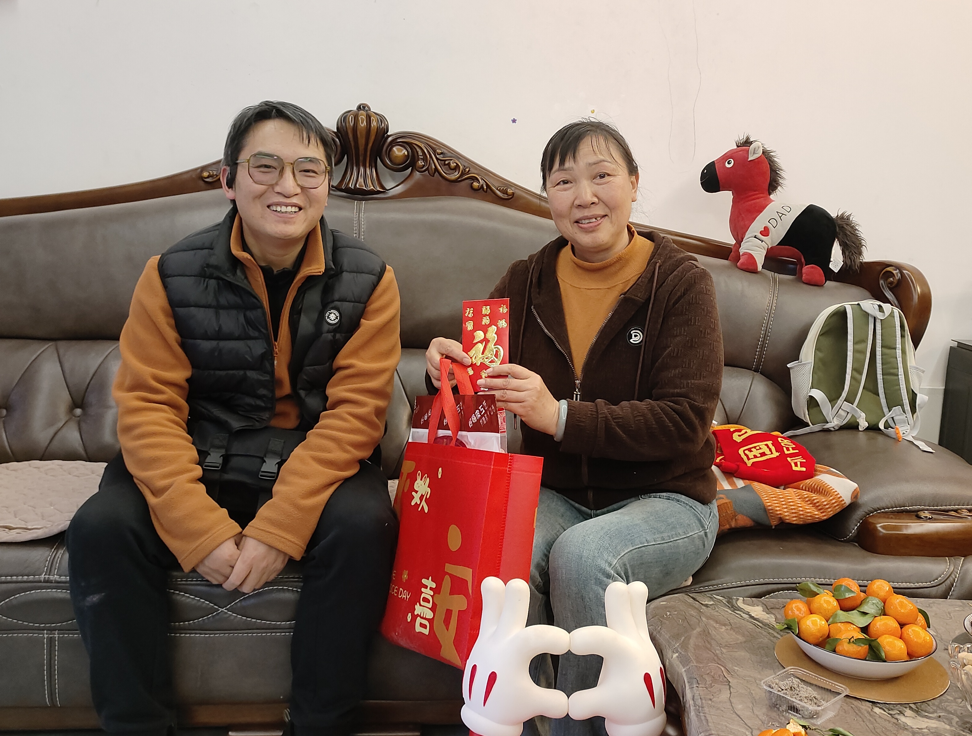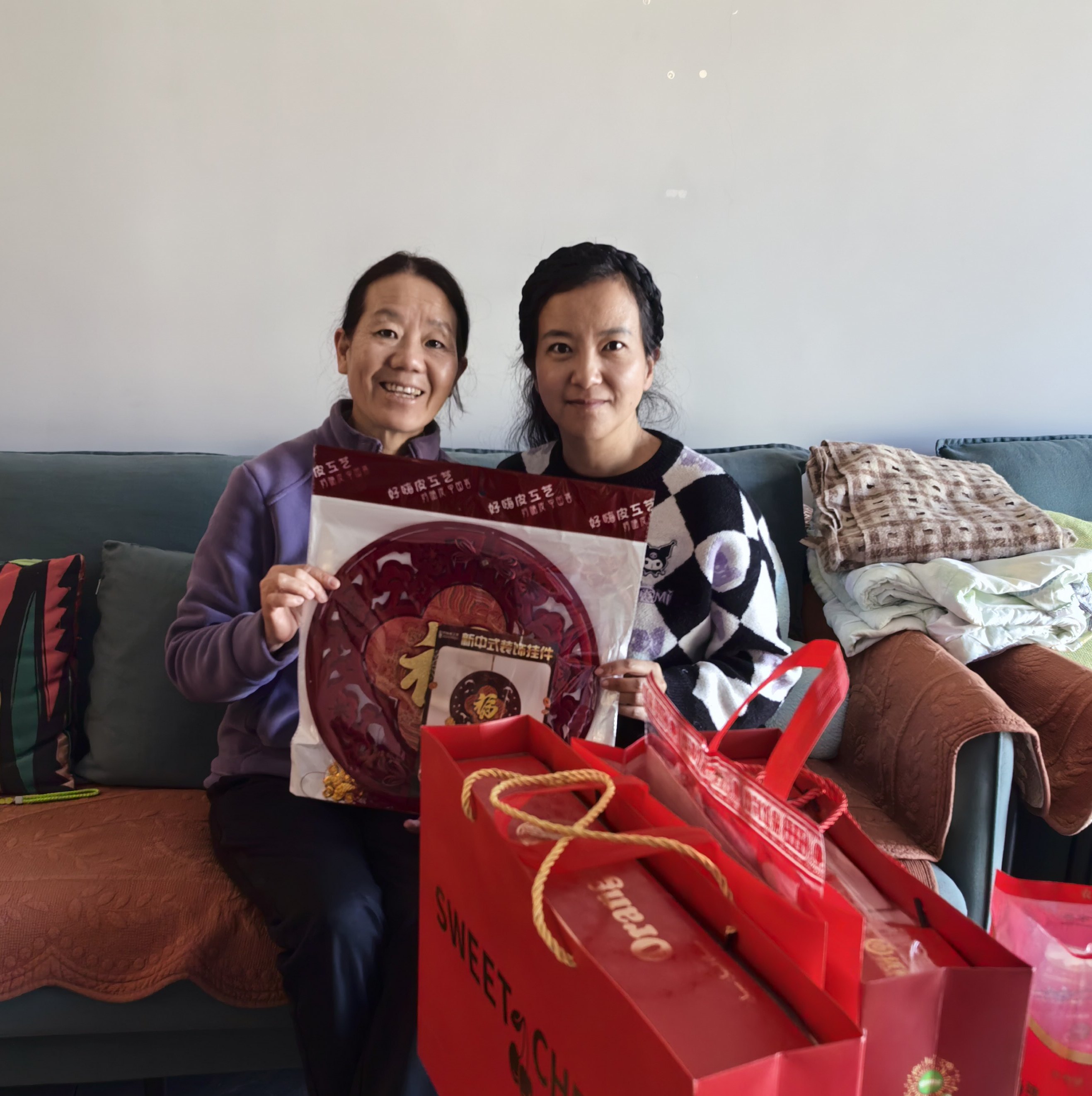 慰问小组为退休教师们送上了精心筹备的节日慰问品:苹果寓意“平安喜乐、福寿康宁”;橙子象征“诸事顺遂、如意吉祥”;福字门贴承载“福满家门、喜事临门”的美好期许;福字中国结缠绕着“团圆美满、吉庆绵长”的新春祝福。这份沉甸甸的心意,既有清甜果香的暖意,又有红韵福泽的喜气,将学校对退休教师的敬重与牵挂,化作看得见、摸得着的温暖,让寒冬里的家充满浓浓的年味儿与温情。