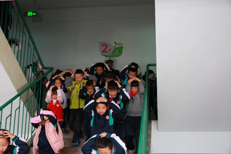 演练前,学校结合实际,认真制定方案,明确职责要求。演练开始,随着总指挥发出指令,各位老师立即到达指定岗位,各位指战员迅速进入楼梯拐角并指导学生沿着指定路线快速前进,有序撤离到疏散场地,整个过程紧张而有序。
