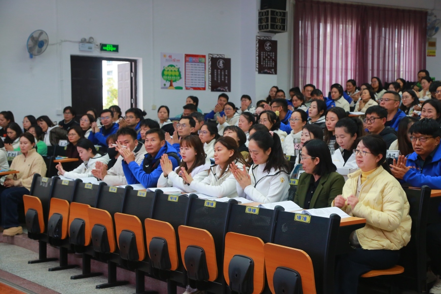 段燕琼校长为全体教师赠送《教师的语言》一书,并发表寄语,引导教师深耕语言艺术,助力教育教学。段校长向全体教师提出三点希望:做语言的“建筑师”,将书中方法转化为教学实践;做沟通的“倾听者”,学会换位思考;做教育的“传承者”,以正向语言凝聚家校合力。期望教师以温暖有力量的语言,演绎精彩教育篇章,助力学生成长。