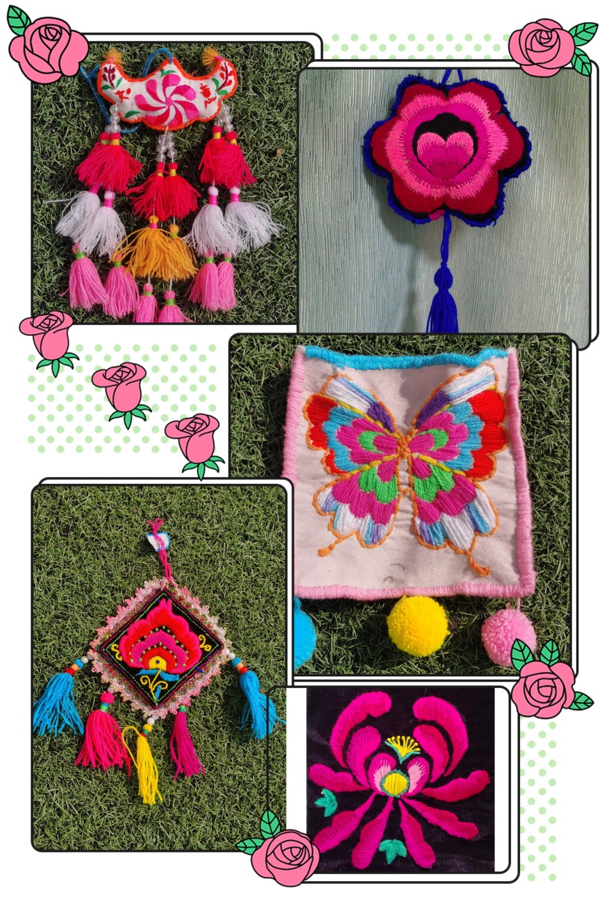 活动尾声,同学们带着一学期精心完成的刺绣作品齐聚一堂,色彩绚丽、针法细腻的彝绣小挂件、纹样绣片、背包等作品整齐陈列,大家自信展示自己的刺绣作品,分享学习过程中的收获与体会,讲述对彝族文化、非遗技艺的理解与喜爱。从初识丝线到掌握针法,从无从下手到独立完成作品,孩子们在分享中交流技巧、畅谈成长,言语间满是收获的喜悦与自豪。