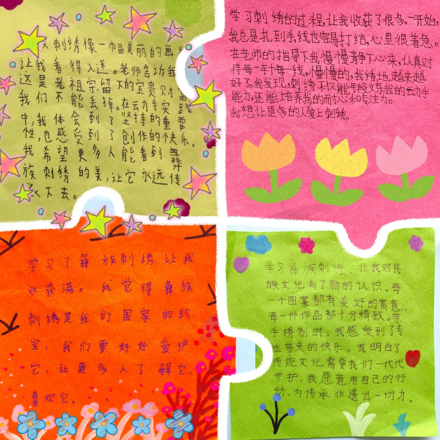 一学期的非遗之旅,不仅让同学们习得传统刺绣技艺,更在心中种下文化传承的种子。以指尖匠心传非遗薪火,以童心稚趣焕绣韵新生,让古老彝绣在校园里生生不息,让优秀民族文化在少年心间扎根绽放。