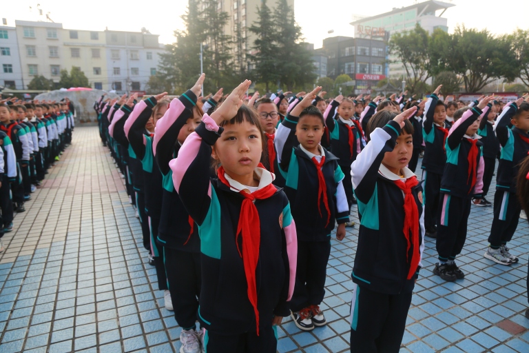 小手握笔描春色,脚步轻盈踏晨光。为传递一年级小朋友乐学善思、友爱互助的美好风貌,楚雄开发区实验小学一年级“身边的榜样——优秀学子风采展示”活动如期而至,让纯真笑容与稚嫩梦想在校园中悄然绽放。