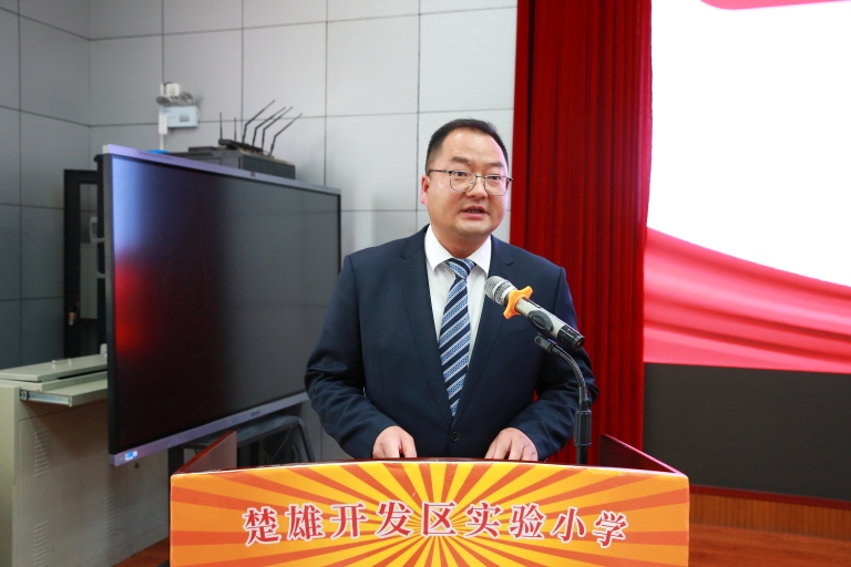 中共楚雄开发区实验小学党总支书记王良同志宣读中共楚雄州委教育工委《关于中共楚雄开发区实验小学总部支委员会召开党员大会进行换届选举的批复》和《中共楚雄开发区实验小学总支部委员会组成人员候选人预备人选的批复》。
