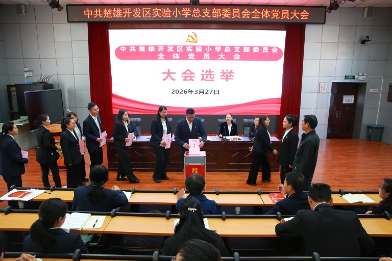 为进一步加强基层党组织建设,提升党组织的凝聚力、战斗力和号召力,推动学校教育事业高质量发展,根据《中国共产党章程》《中国共产党基层组织选举工作条例》等有关规定,2026年3月月27日,楚雄开发区实验小学总支部委员会召开党员大会完成换届选举工作。