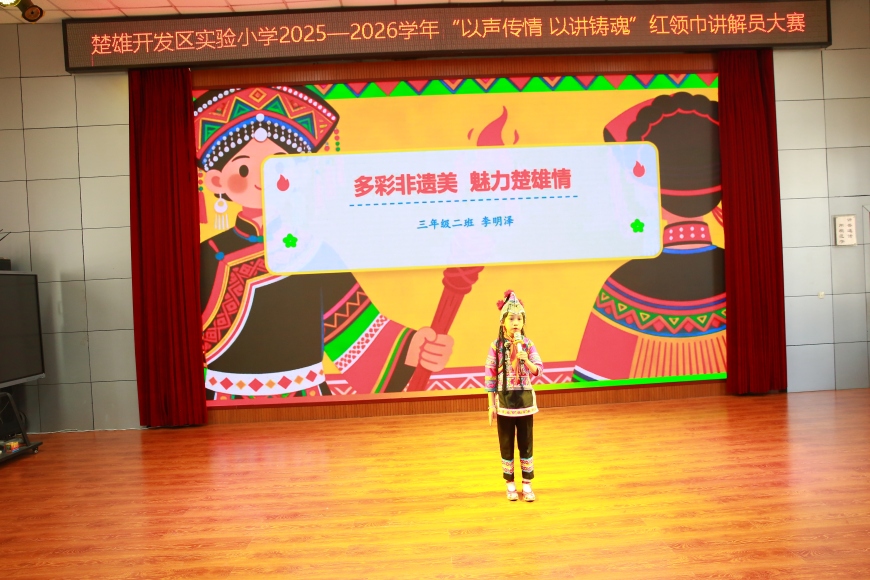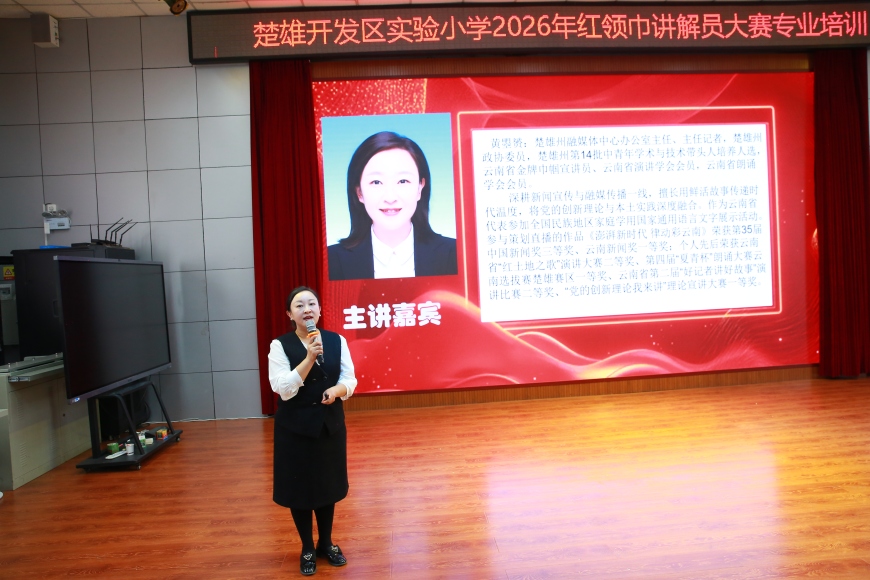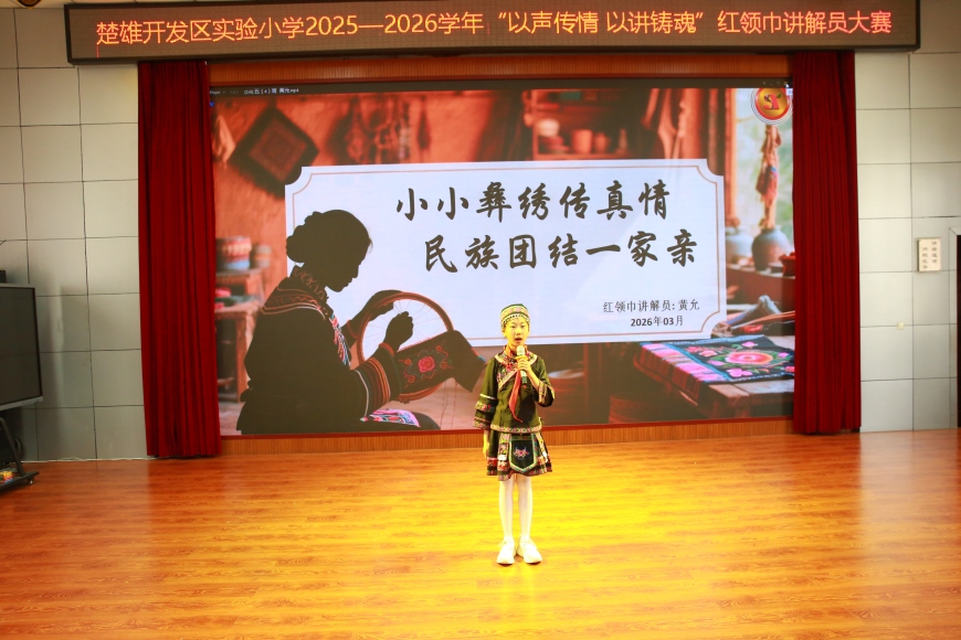 为深入贯彻落实《中共中央关于全面加强新时代少先队工作的意见》精神,扎实推进少先队实践育人工作,2026年3月23日、30日,楚雄开发区实验小学分阶段隆重举办2025—2026学年“红领巾讲解员”大赛。 活动通过以赛促学、以讲促行的方式,引导广大少先队员在讲述红色故事、民族团结故事、时代模范先进事迹中,厚植家国情怀,传承红色基因。